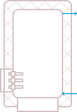 Водонагревательная емкость снаружи защищена слоем теплоизоляции и защитным кожухом. Снаружи к нагревательному элементу подсоединяется пульт управления, обязательно включающий управление температурой. Обычно это биметаллический термостат. Нагрев включается, когда термодатчик регистрирует в баке температуру ниже установленной.