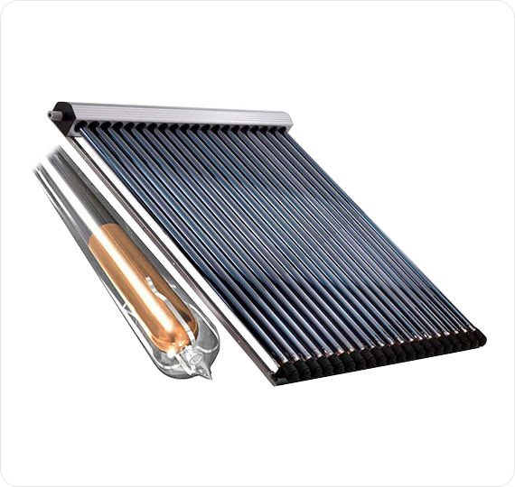 Кроме того, в вакуумных солнечных коллекторах нашли применение тепловые трубки, выполняющие роль проводника тепла. При облучении установки солнечным светом жидкость, находящаяся в нижней части трубки, нагреваясь, превращается в пар. Пары поднимаются в верхнюю часть трубки (конденсатор), где конденсируясь передают тепло коллектору. Использование данной схемы позволяет достичь большего КПД (по сравнению с плоскими коллекторами) при работе в условиях низких температур и слабой освещенности. Современные бытовые солнечные коллекторы способны нагревать воду вплоть до температуры кипения даже при отрицательной окружающей температуре.