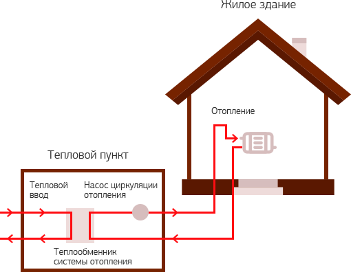 - Внутридомовая разводка. Теплоноситель попадает в квартиры - в радиаторы отопления.