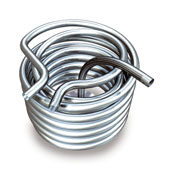 По своей структуре теплообменник-змеевик представляет собой свернутую по определенному профилю трубу. Чаще всего подобные изделия производятся в форме спирали. Змеевик помещается в емкость, заполненную рабочей средой. Нагревание теплоносителя осуществляется за счет его непрерывного или периодического протока через систему. Конструкция погружного змеевика может дополняться перемешивающими устройствами. Применение таких устройств обеспечивает увеличение эффективности работы системы.