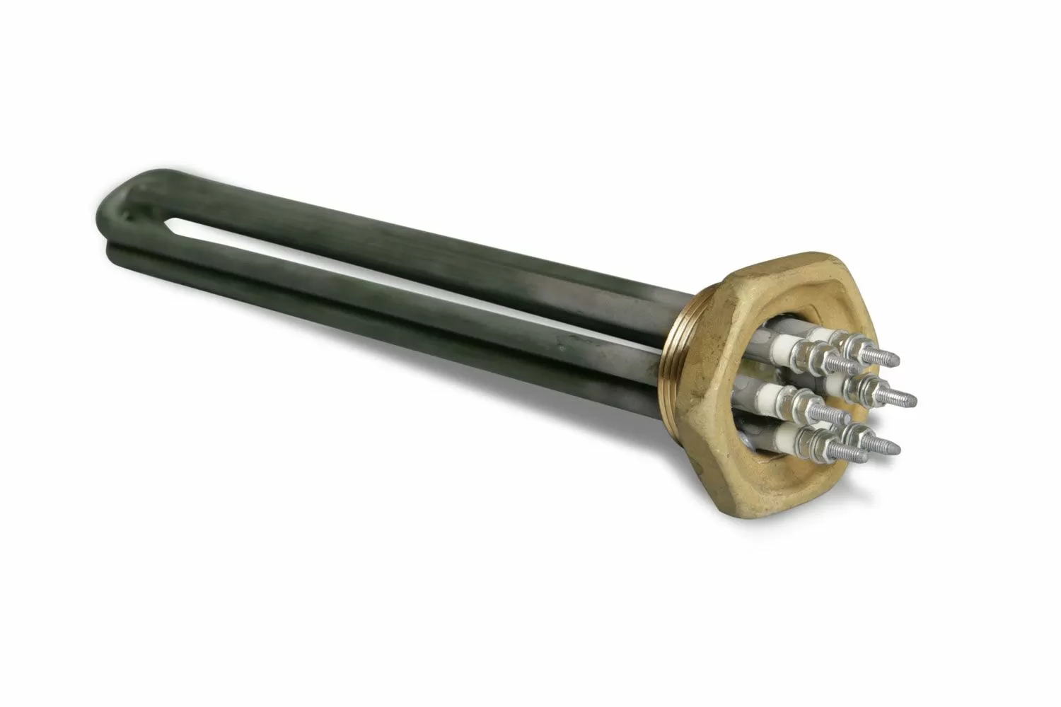 Нагрев воды в водонагревателе может производиться как от блока встроенных электротэнов, так и от теплообменника. Возможен комбинированный вариант. Каждый ТЭН 65 кВт имеет латунное основание и состоит из трех ТЭНов, изготовленных из нержавеющей стали AISI316L. Данная марка стали дает усиленную коррозионную стойкость, что увеличивает срок службы блок-ТЭНов 65 кВт.